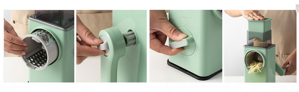 Haz que cocinar sea más rápido, seguro y divertido con este práctico rallador manual de tambor. Ideal para verduras, frutas, quesos, frutos secos y mucho más. ¡Un imprescindible para cualquier cocina moderna!