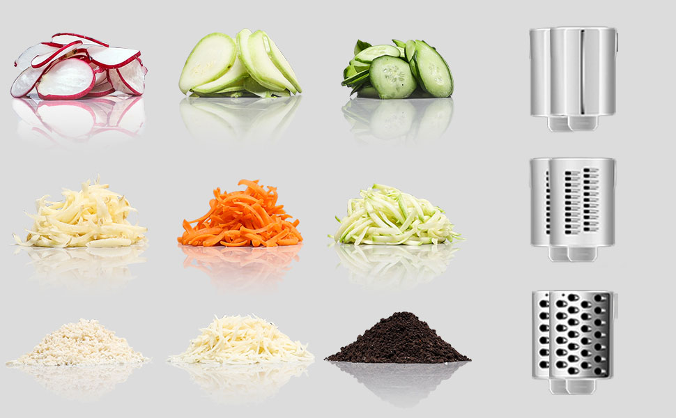 Ralla, corta en tiras finas o gruesas y tritura todo tipo de ingredientes con facilidad. Perfecto para ensaladas, guarniciones, pizzas o snacks saludables.